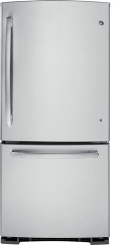 GE 20.2 Cu. Ft. Bottom Freezer Refrigerator-Stainless Steel with two freezer baskets and glass shelvesRead More