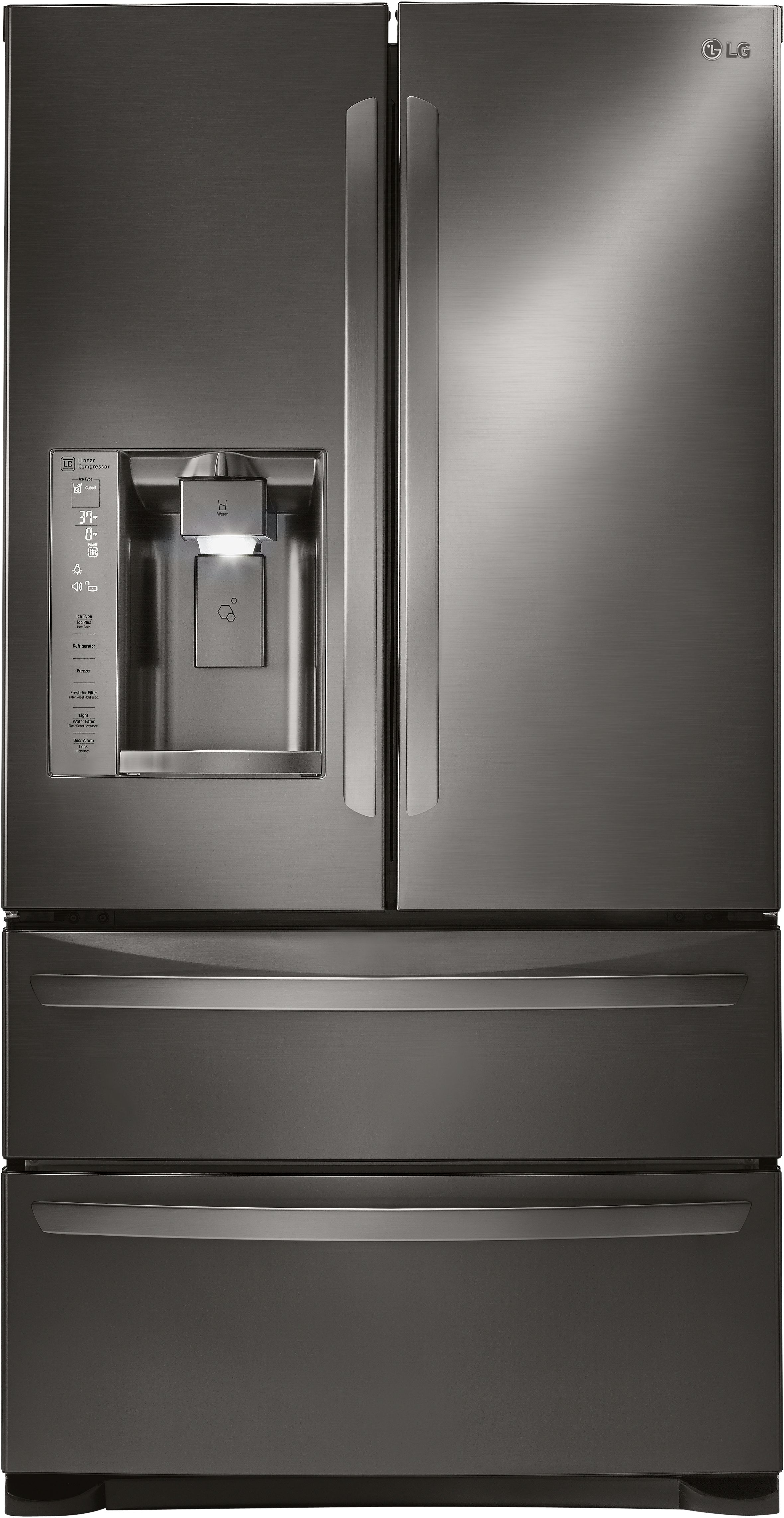 LG 27 Cu. Ft. 4 Door French Door Refrigerator-Black Stainless Steel with Slim SpacePlus® ice system and 3 SpillProtector™ tempered glass shelvesRead More